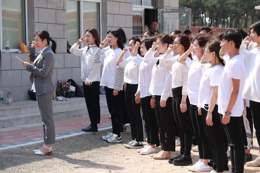 参观结束之后,全体党员在党旗下进行了庄严的宣誓,炎炎的烈日丝毫没有消减大家的热情,“随时准备为党和人民牺牲一切,永不叛党”,一声声庄肃且响亮的宣誓彰显着我们的朝气与决心。