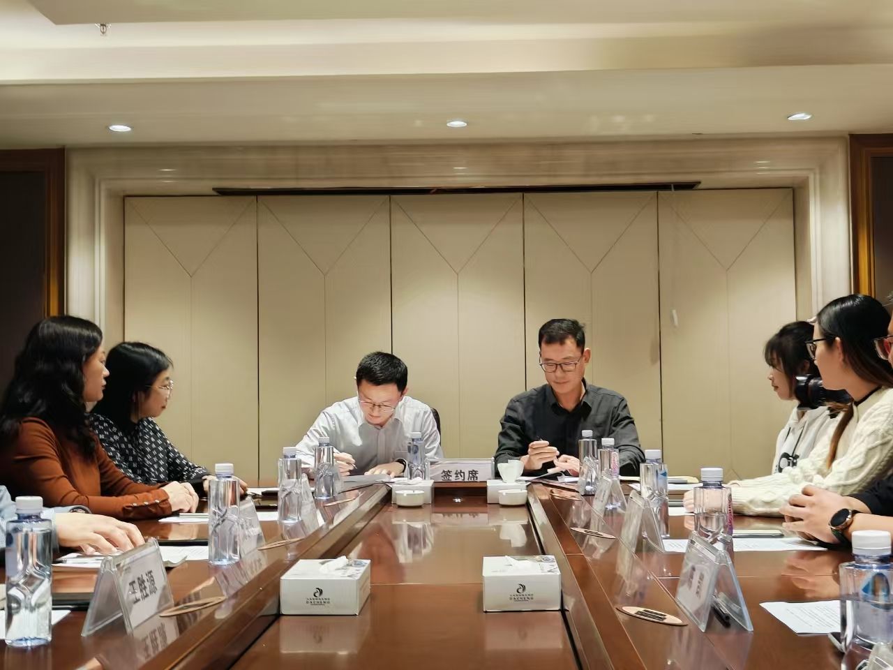 在双方的见证下,王胜源院长与陈凯总经理共同签署了院企合作协议,陈永华书记与陈凯总经理共同为就业创业实践基地揭牌,这一举动标志着双方正式建立战略合作关系。