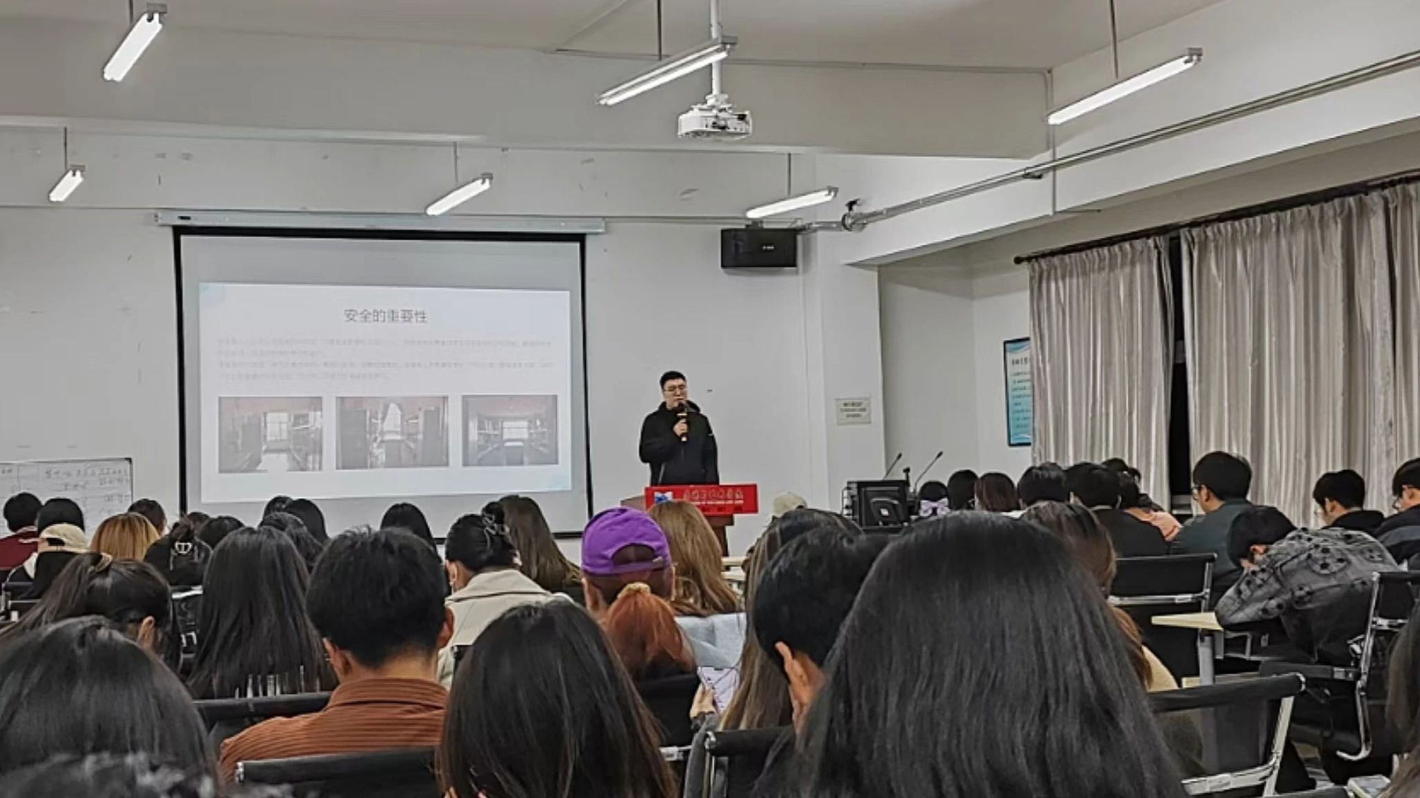 讲座中,李济羽老师系统阐述宿舍安全、交通安全和人身安全等的重要性,强调这些问题不仅关系到学生的生命财产安全,还是营造舒适、安全的校园学习生活环境的关键。他列举了人走未断电不锁门、使用违章电器、室内吸烟等大学生宿舍普遍存在问题中隐藏的巨大安全隐患,并对宿舍生活的各个方面提出的明确要求与期望: