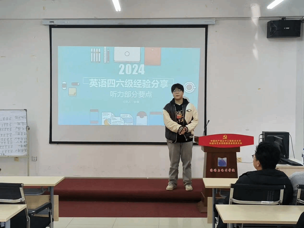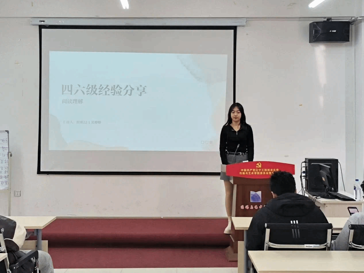 于4月24日在文轩楼406召开大学英语四、六级学习经验分享会。本次分享会由动画21-1班康健、数媒22-1班吴婷婷和广电22-1班陈琦莹三位同学主讲。