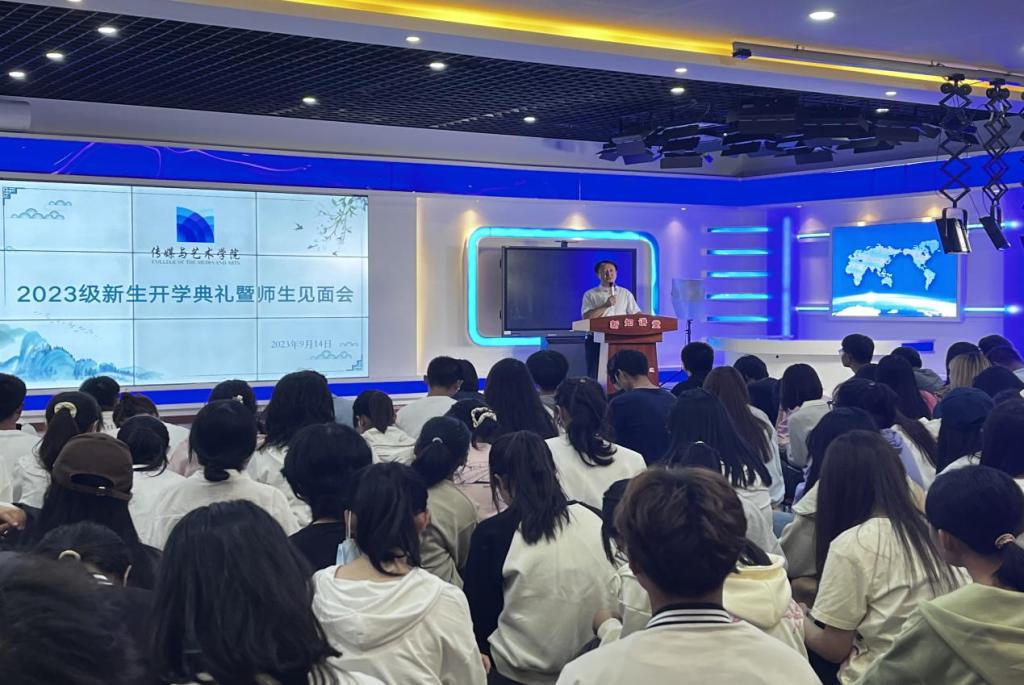 2023级开学典礼暨师生见面会在文轩楼演播大厅举行。探花porn