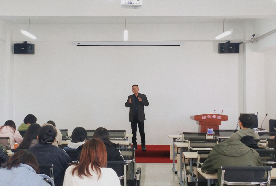 “授一堂课不是讲课,是和同学们共同分享、共同学习、共同进步”。赵景春老师给大家分享了自己作为阜新市电视台主持人的成长历程,他谈到了自己的职业生涯开始,谈到了自己在阜新电视台工作的经历,提出人生只有一次,要时刻选择做好准备。