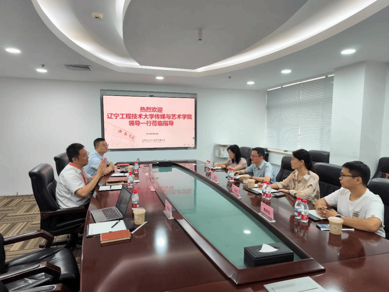 9月16日上午,调研团队赴北大方正集团参观交流。北大方正电子有限公司北方区总经理魏寒冰、通用产品部副总监陈富豪介绍了北大方正集团在媒体技术研发与校企合作方面的最新进展。双方围绕行业前沿技术趋势、实验室建设、课程资源开发等议题展开务实交流,共同探索产学研协同创新的可行路径,致力于推动传媒技术应用转化,培养适应未来行业需求的高素质复合型人才。