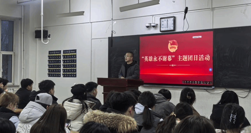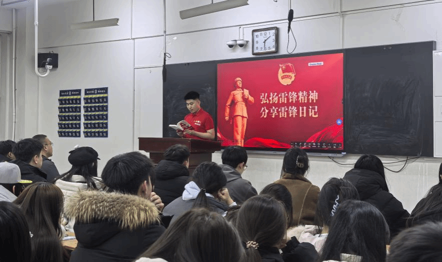 团委书记陈耀双主持,各班级主要学生干部、团员代表齐聚一堂,共计150余人参与这场兼具思想性与感染力的主题团日活动。陈耀双老师强调,雷锋精神是穿越时空的精神火炬,新时代青年要传承红色基因,以英雄为榜样,将雷锋精神融入学习生活、转化为实际行动;同时,他号召全体团员深入学习辽宁时代楷模金城龙同志的先进事迹,从榜样身上汲取奋进力量,践行青年责任与担当。