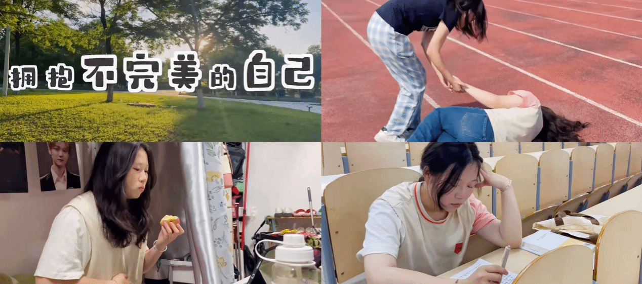 22级张滢絮、郑燕华、张子涵、张宛彤四位同学制作的《拥抱不完美的自己》,是一部聚焦女性身材焦虑与自我接纳的校园短片,讲述了一位女孩因外界评价陷入身材自卑,经历盲目减肥、过度控制导致产生焦虑、昏迷等极端影响,最终通过自我和解与外界鼓励,学会拥抱真实的自己,慢慢变得不再焦虑体重、容貌等外在条件的暖心成长故事。影片通过细腻的镜头语言和情感叙事,搭配温情音乐和慢节奏剪辑,向观众传递“拒绝身材焦虑”的核心主题。