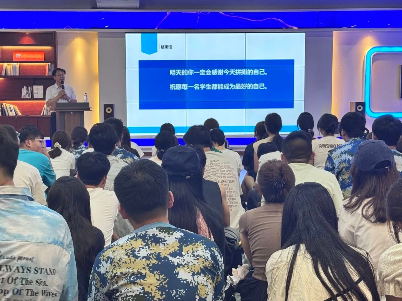 讲座尾声,陈永华书记以“明天的你一定会感谢今天拼搏的自己”寄语新生,激励学子以奋斗之姿践行“请党放心,强国有我”的青春誓言。