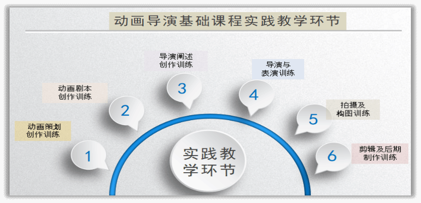 动画导演基础课程作为动画专业的核心课程,深度践行以成果为导向(OBE)的教育理念,构建起以导演工作任务为主线的创新教学理论框架。课程精心设计三大综合训练项目与六个实验教学环节,运用反向设计逻辑,将产出完整影视作品这一终极目标作为教学锚点,拆解为循序渐进的六个阶段性实验,并建立科学的过程性评价体系,确保学生在实践中稳步提升专业能力。
